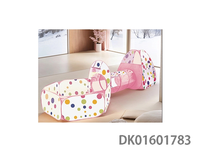 儿童帐篷粉红色圆点图案精美印花三合一三件套组合游戏过家家游戏屋粉红色款
