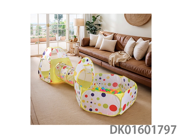 儿童帐篷嫩黄色圆点图案精美印花三合一三件套组合游戏过家家游戏屋嫩黄色款