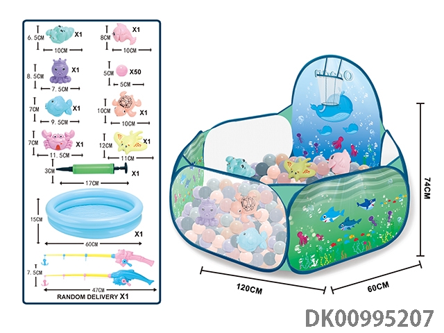 海洋玩具帐篷带50粒球加10件钓鱼套装