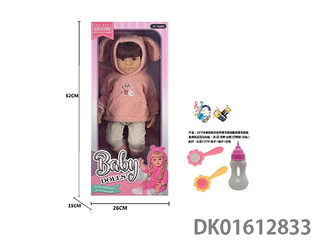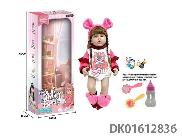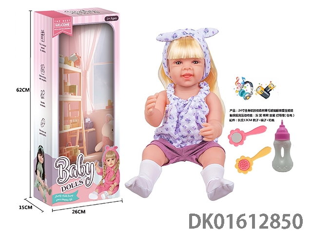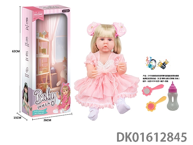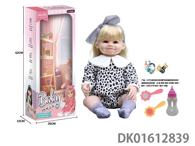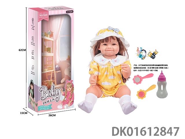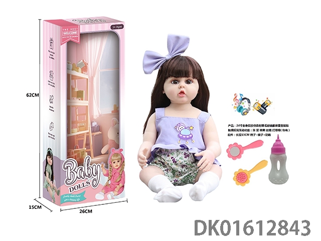 24寸全身软胶仿真有睫毛玻璃眼珠重生娃娃带梳子镜子奶瓶(触摸摇晃互动功能:哭 笑 咳嗽 放屁 打喷嚏)
