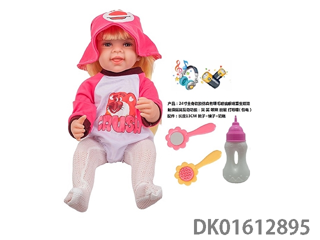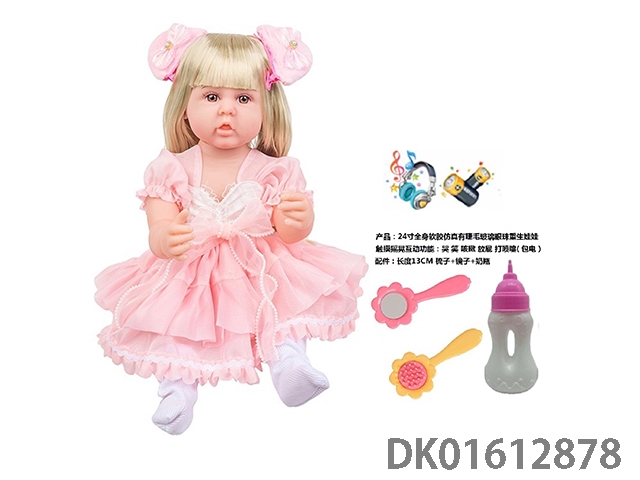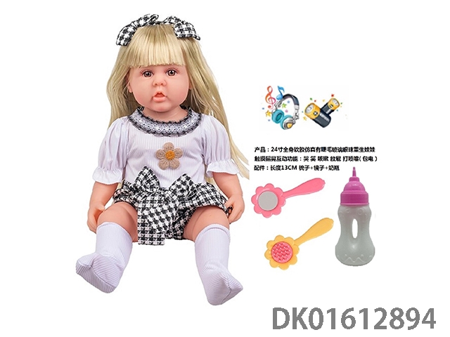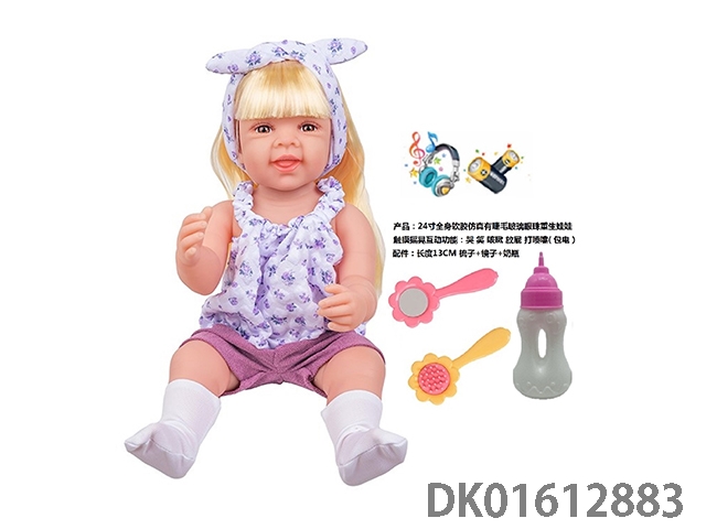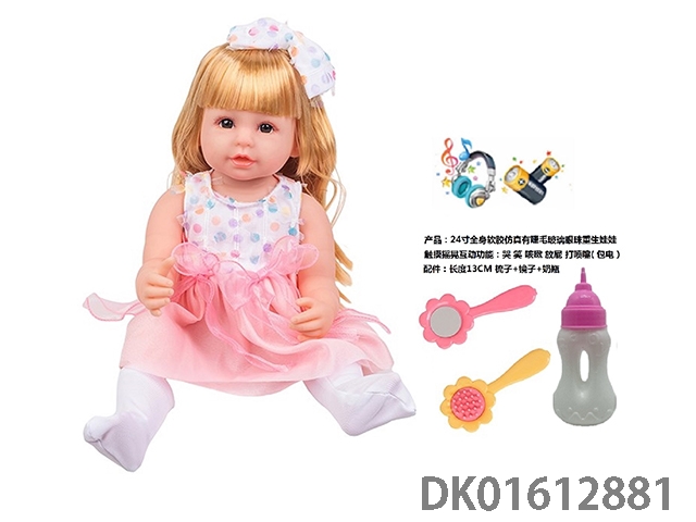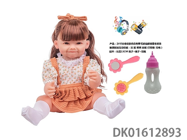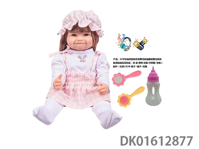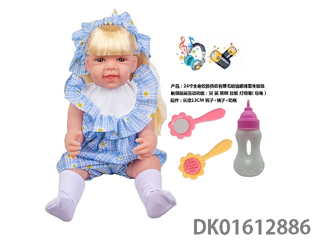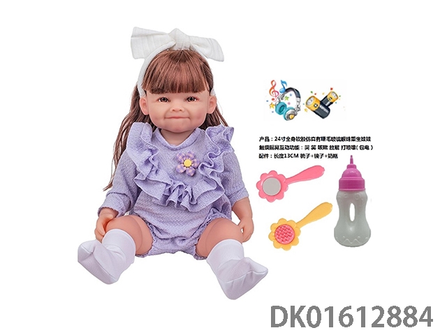 24寸全身软胶仿真有睫毛玻璃眼珠重生娃娃带梳子镜子奶瓶(触摸摇晃互动功能:哭 笑 咳嗽 放屁 打喷嚏)