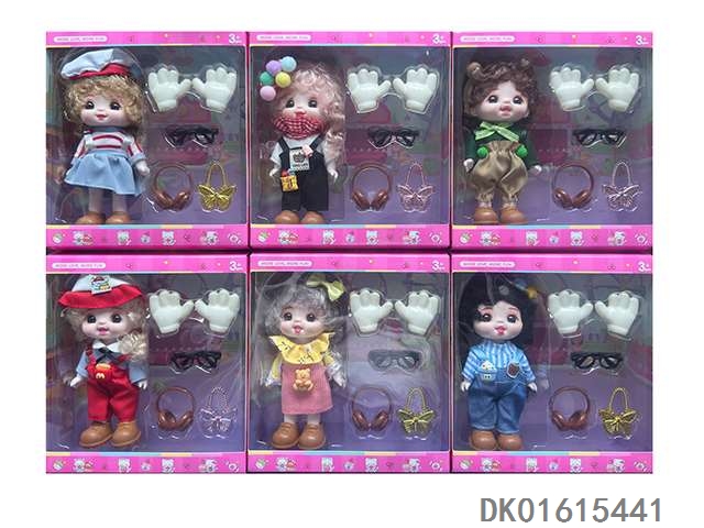 6寸时尚表情萌娃搭配多款配件6款混装