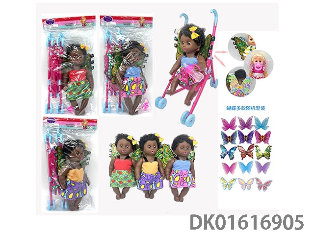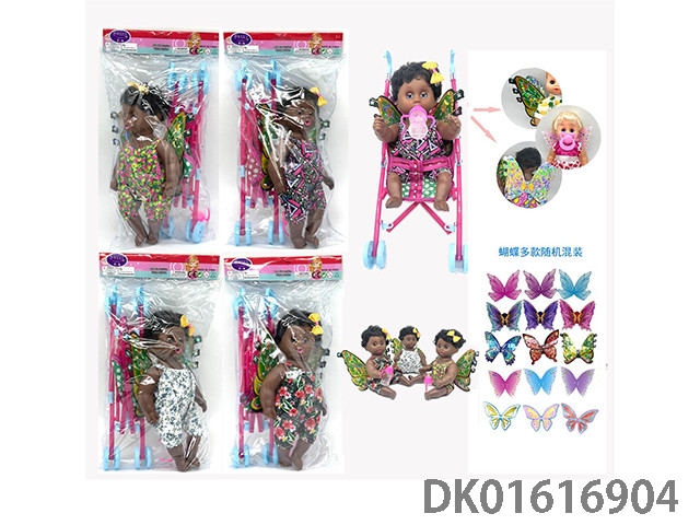 12寸多款混装空身黑人非洲小天使娃娃+推车+奶瓶