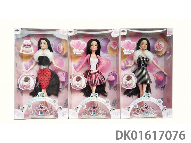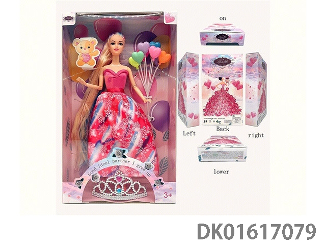 11.5寸9关节实身彩色长发时尚晚装芭比+8颗气球+儿童可戴皇冠