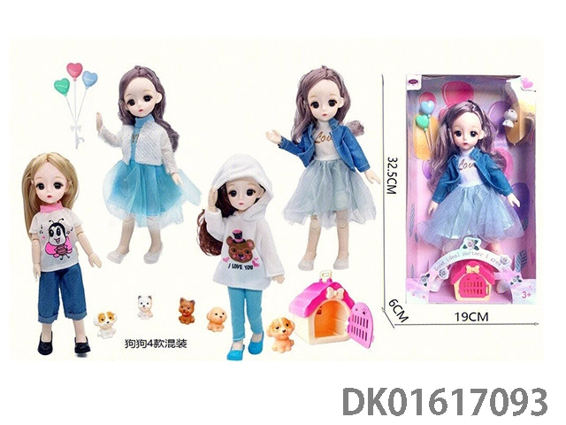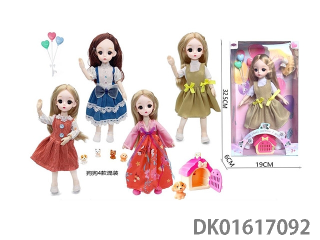 12寸30厘米4款混装3D真眼活动关节高品质bjd时尚娃娃+气球+宠物狗+狗笼