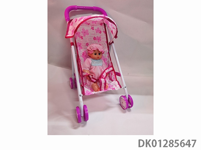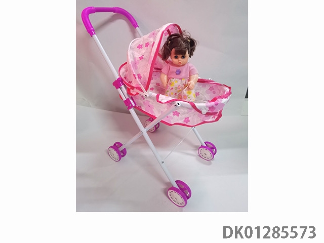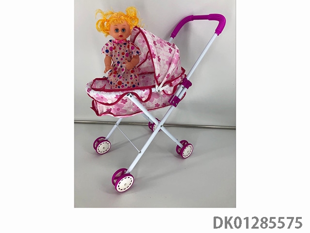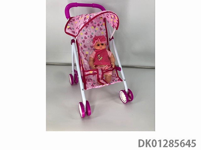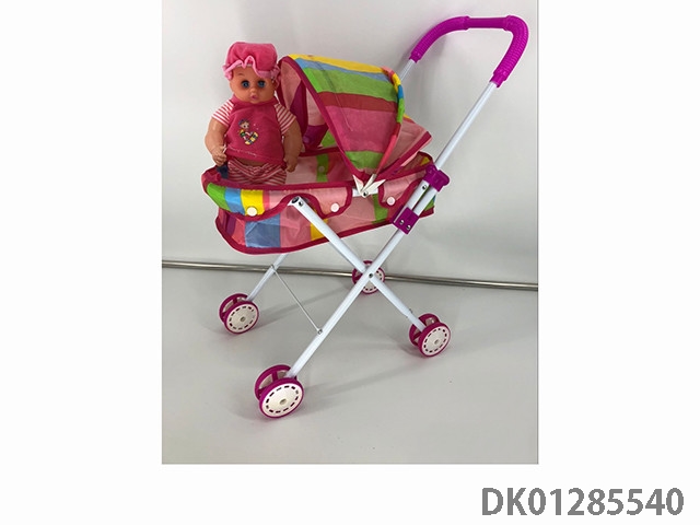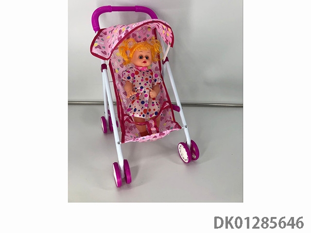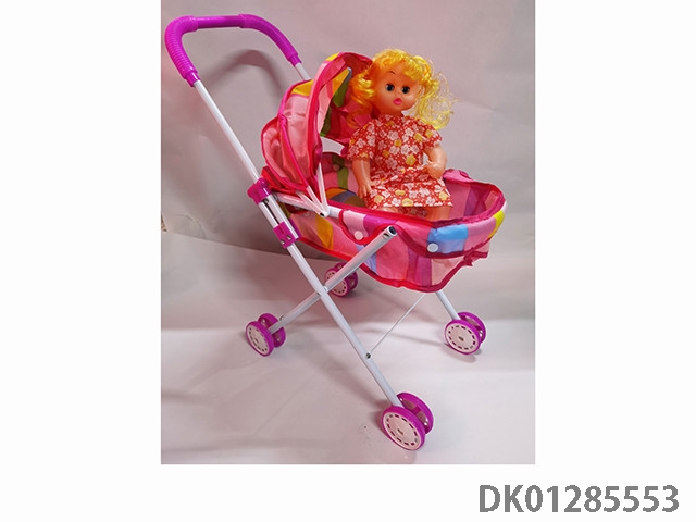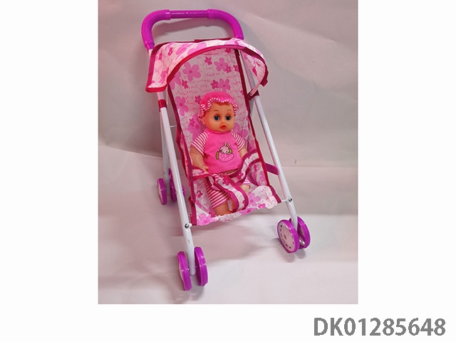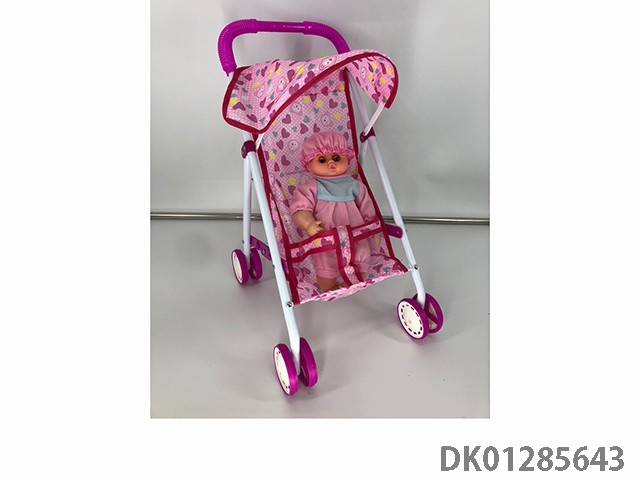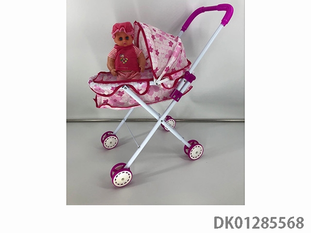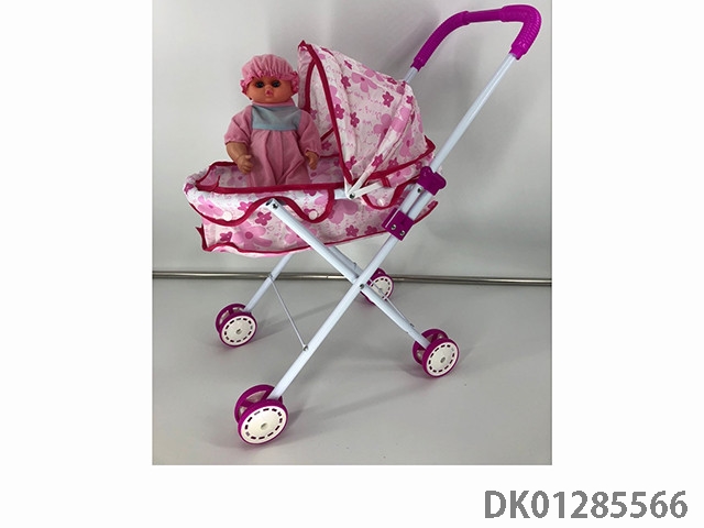 粉色铁制玩具推车带娃娃