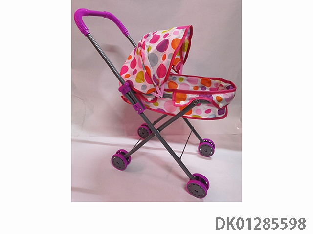浅紫色铁制玩具推车带娃