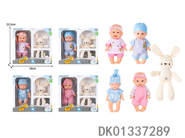 8寸搪胶身公仔仿真娃娃配梅花兔子