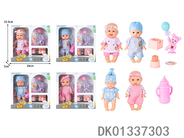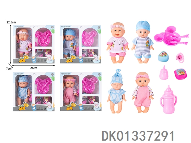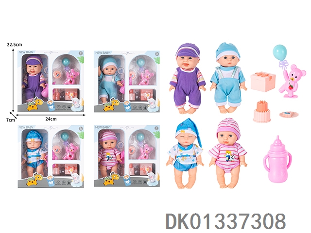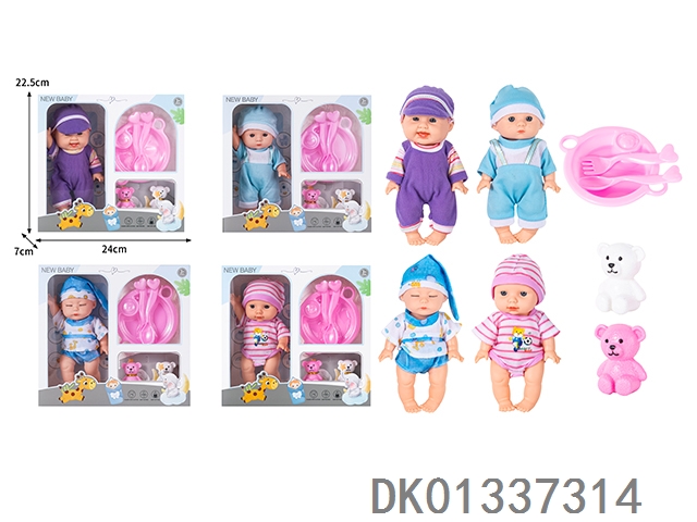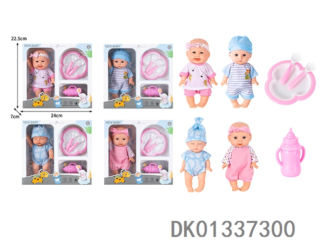 8寸搪胶身公仔仿真娃娃配餐具,奶瓶