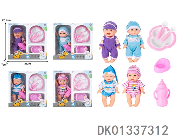 8寸搪胶身公仔仿真娃娃配餐盘,奶瓶,小马桶