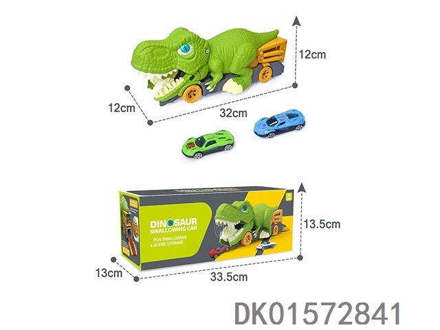 恐龙吞食车收纳货柜车搭配2辆合金小车