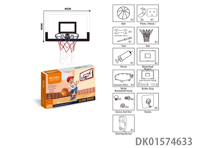 网格挂式篮球板25CM框可扣篮+计数器