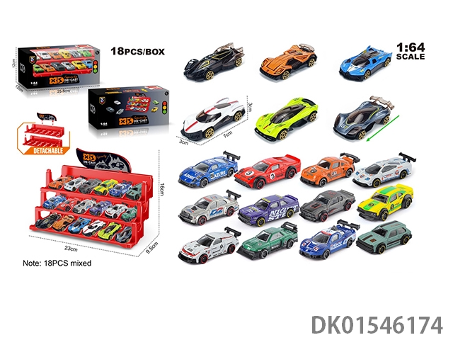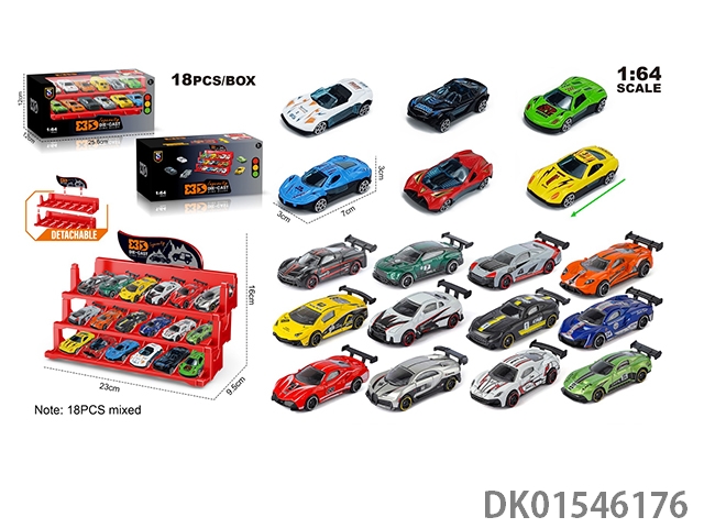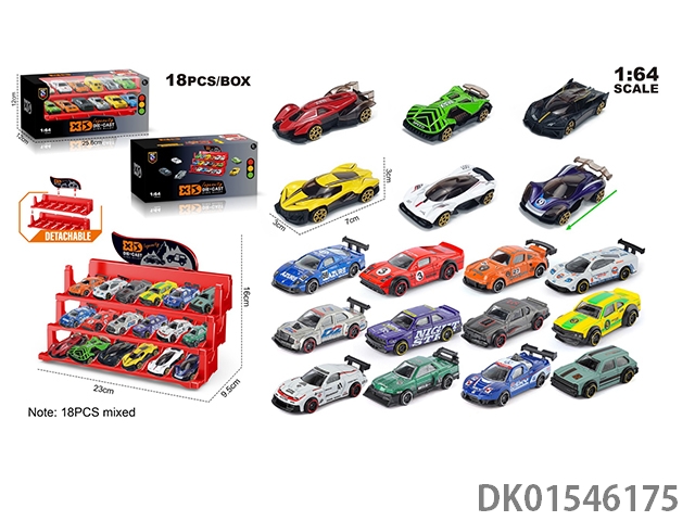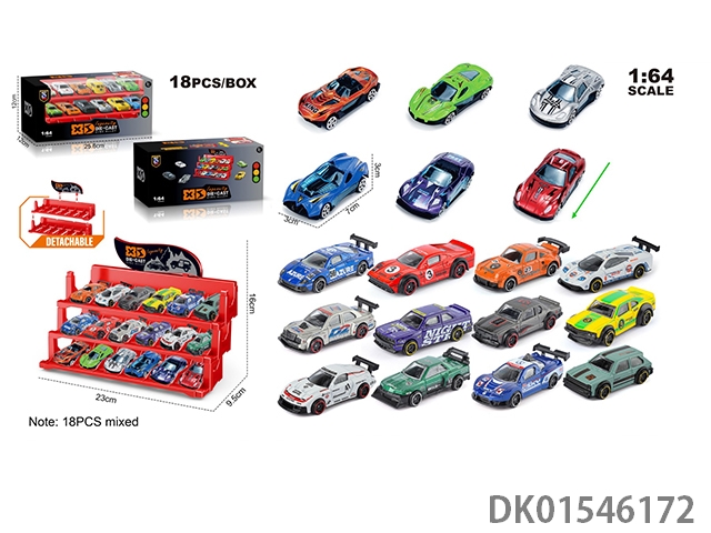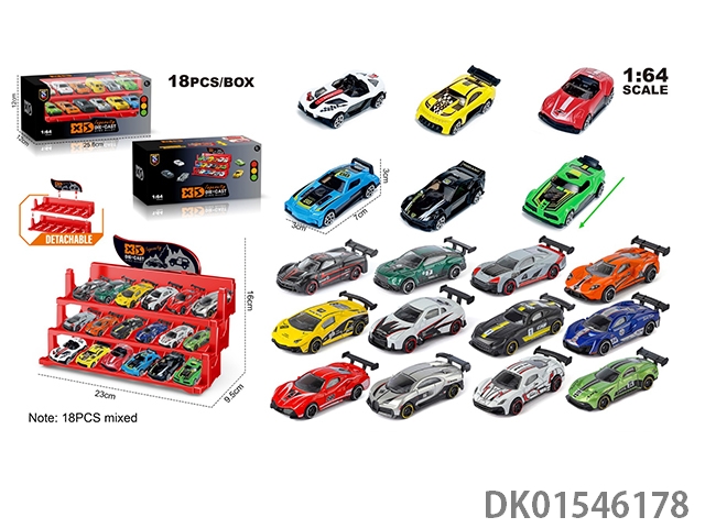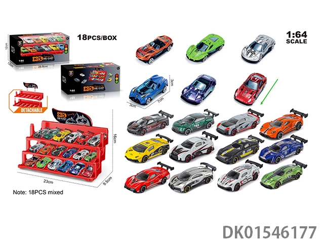 英文1:64压铸锌合金停车场车模 18只装(18款随机混装)