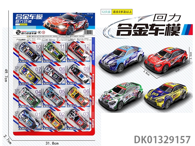 合金车模带回力功能6款不同图案混装(12只/板)