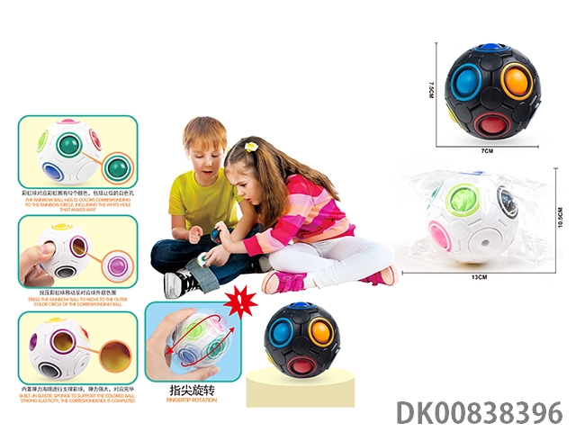2合1手指尖陀螺益智旋转减压彩虹球升级版(黑白色7厘米12孔10色9个彩球旋转对色,高速轴承指尖旋转大约100秒)