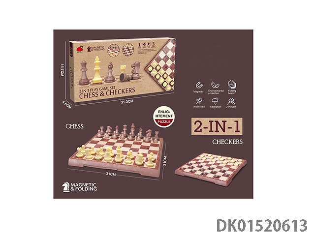 2合1(折叠磁性木纹国际象棋/西洋跳棋)