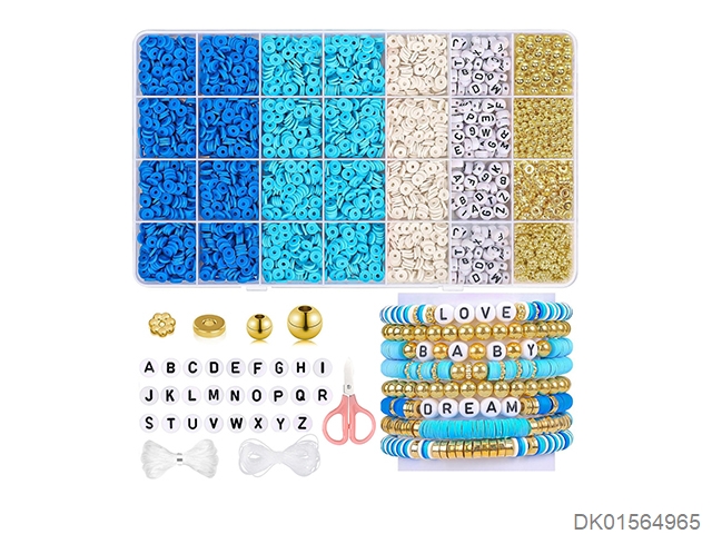 软陶+字母珠+4/6mm金珠+隔珠+剪刀线(28格)