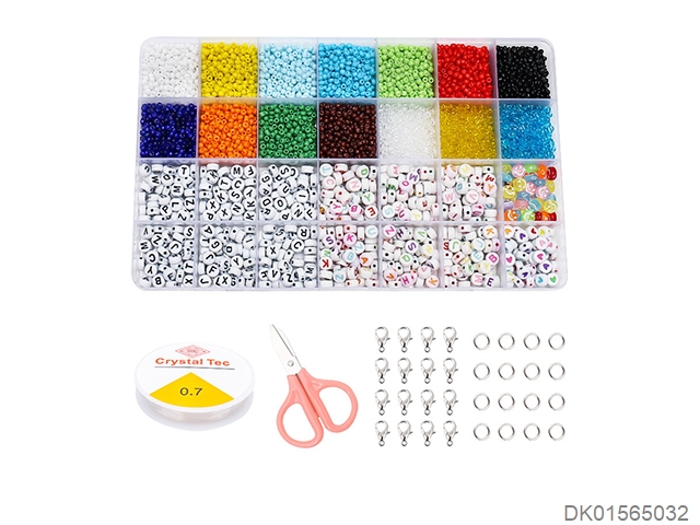 3mm米珠+字母珠+龙虾扣圈剪刀线(28格)
