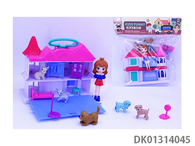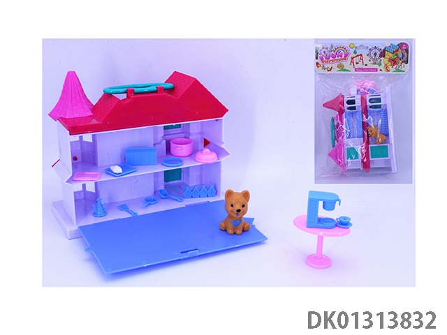 12CM女孩手提翻盖别墅套装(5小狗家具)