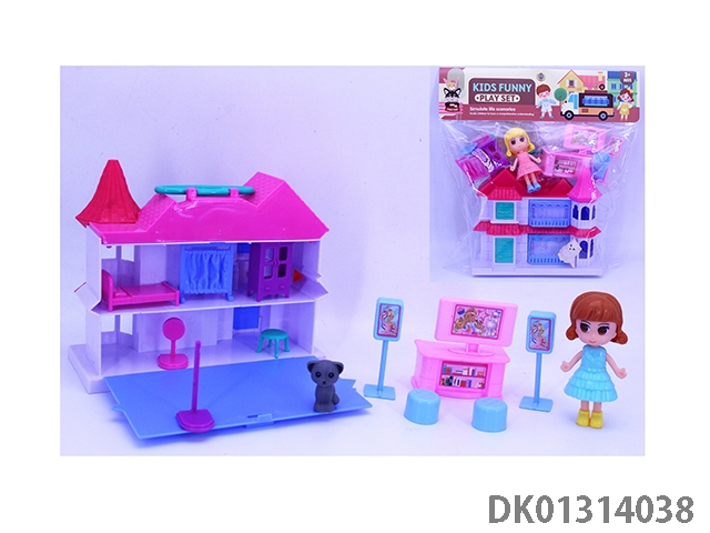 女孩手提翻盖别墅套装(小狗电视家具)
