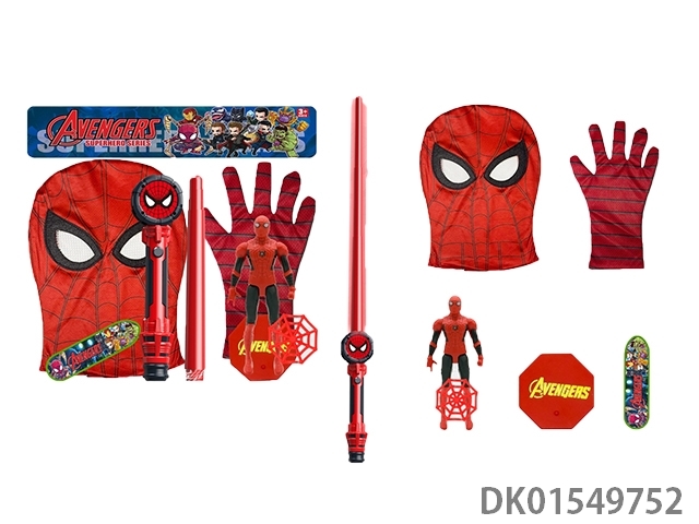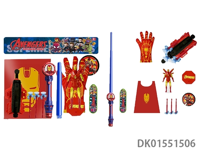 红钢铁发声光剑+枪*5弹+手套+人物+披风+滑板底座+标靶