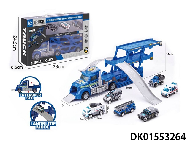 折叠货柜车-合金警察轨道场景(蓝色货柜车)