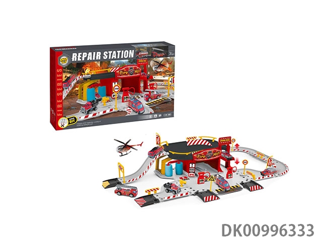 合金消防停车场修理厂套装(配2合金车)