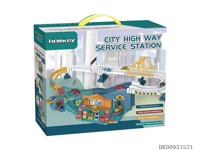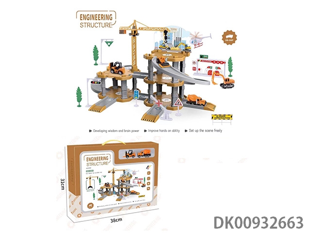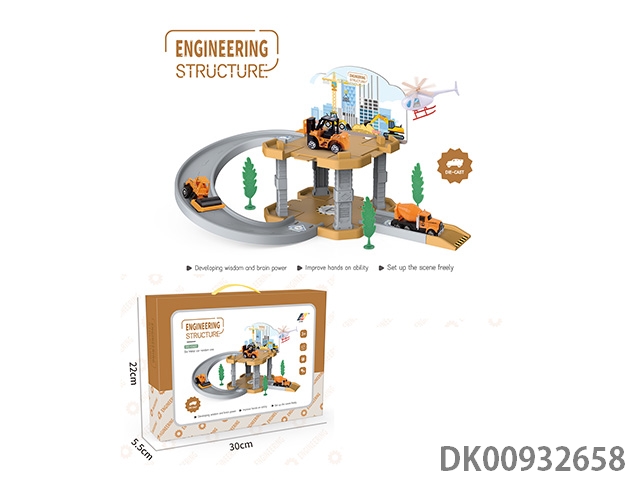 合金工程车轨道滑梯玩具