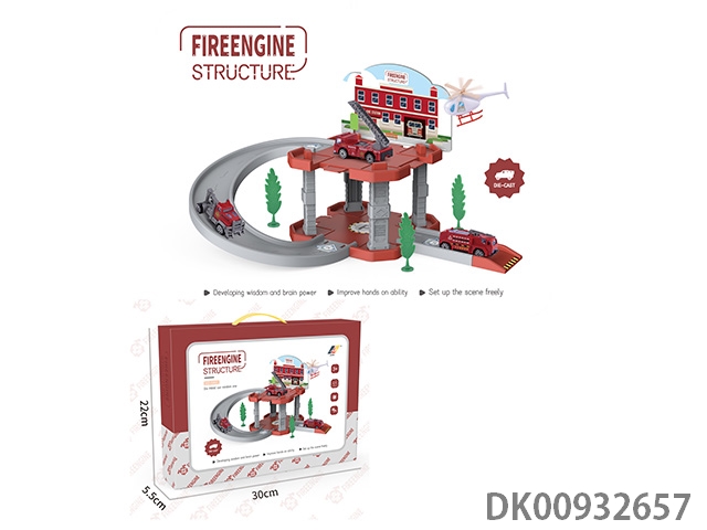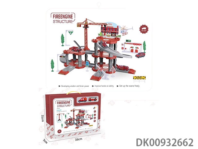 合金消防车轨道滑梯玩具
