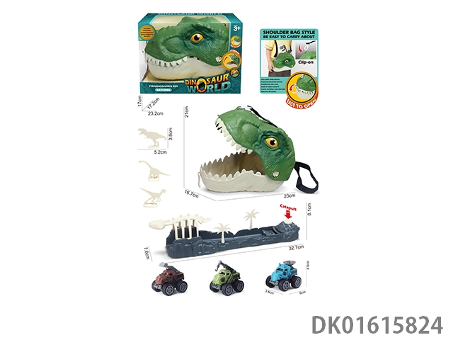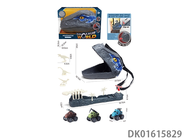 霸王龙收纳背包+6只恐龙仔+3只伸缩车仔+配件一袋