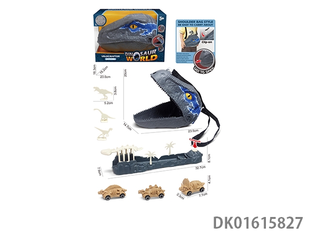 迅猛龙收纳背包+3只恐龙仔+弹射器骨架配件