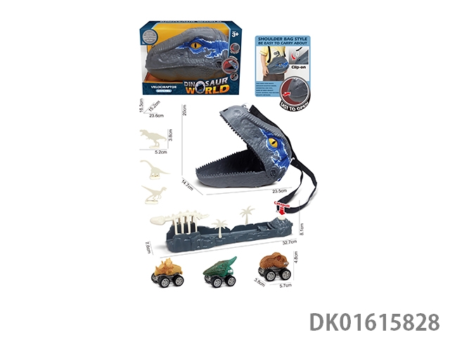 迅猛龙收纳背包+3只工程恐龙仔+弹射器骨架配件