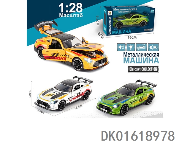 (俄文)1:28 仿真4开门灯光音乐回力合金赛车