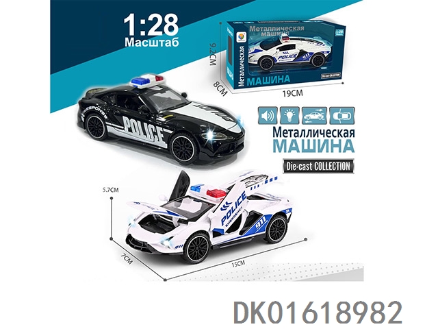 (俄文)1:28 仿真4开门灯光音乐回力合金警车