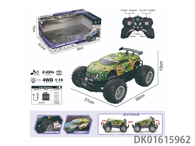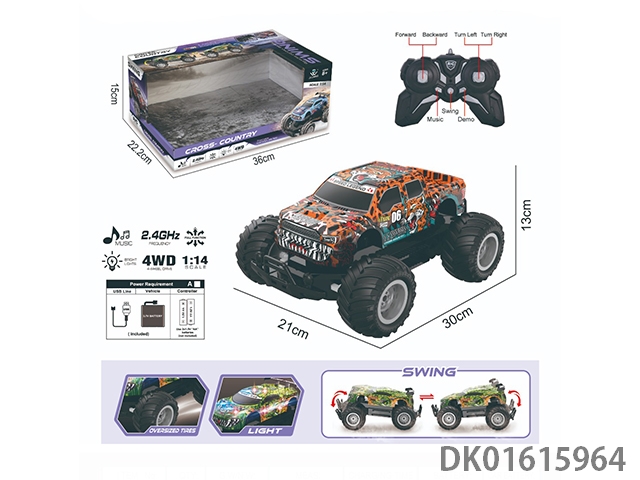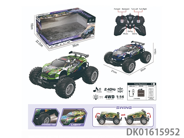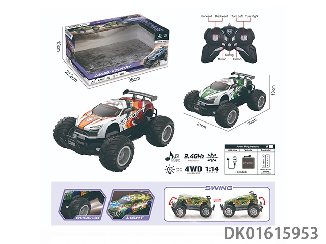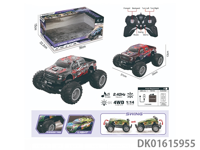 1:14灯光音乐2.4G 4驱越野摇摆车PVC(包电)30M