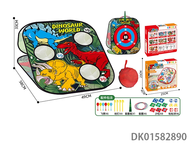 Five in one storage folding dinosaur style sandbag flying tag throwing circle sticky ball sports toy