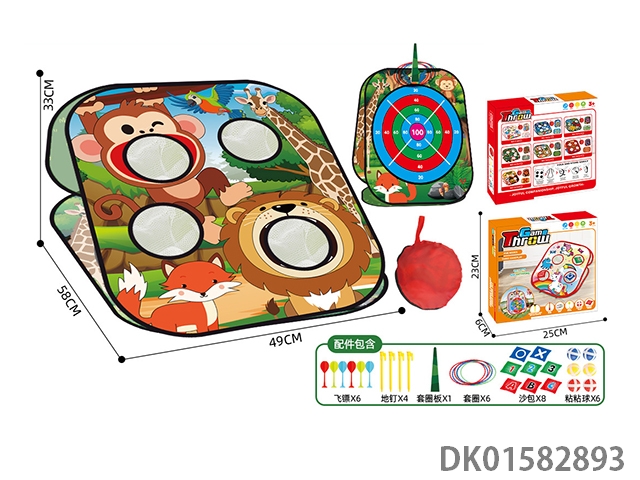 Five in one storage folding animal style sandbag flying tag throwing circle sticky ball sports toy