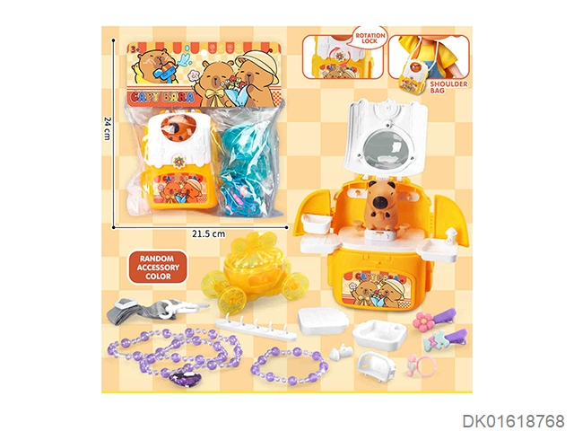 Capibala’s one shoulder backpack and necklace for home play