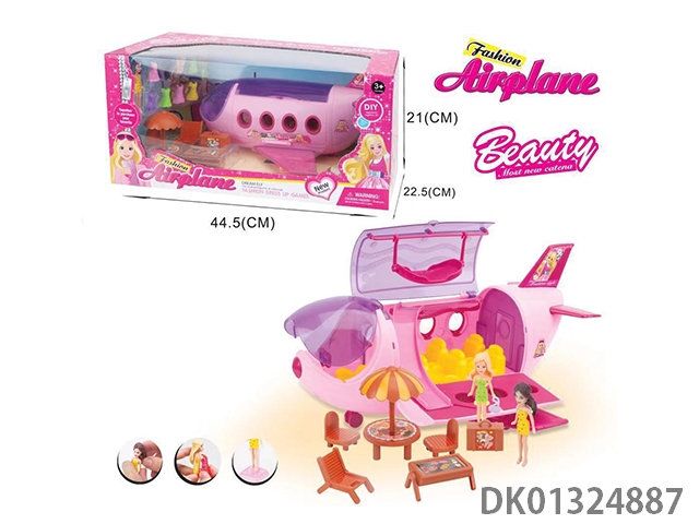 Dress up for a girls’ plane (pink), paired with 2 girls/2 hair/6 clothes/2 handbags/1 set of sun umbrella tables and chairs/barbecue grill