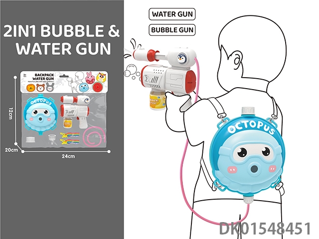2-Layer water gun and octopus backpack 1.5l, electric bubble gun and water gun 2-in-1