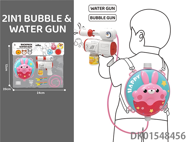 2-Layer water gun and rabbit backpack 1.5l, 2-in-1 electric bubble gun and water gun