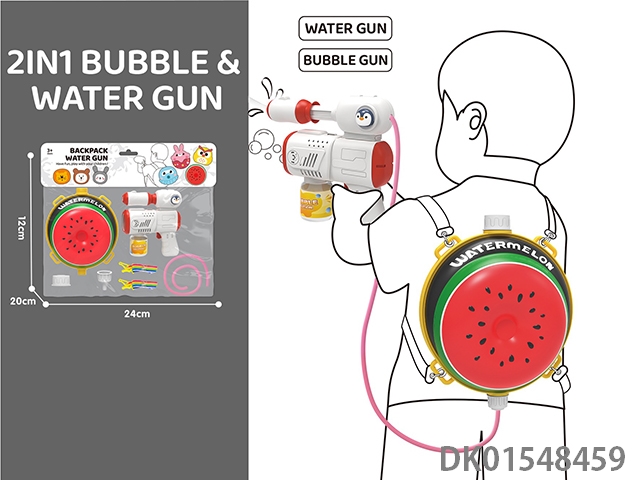 2-Layer water gun and watermelon backpack 1.5l, electric bubble gun and water gun 2-in-1
