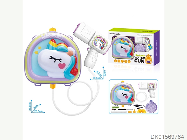 Rainbow horse water gun and backpack (usb charging cable, lithium battery, and screwdriver)