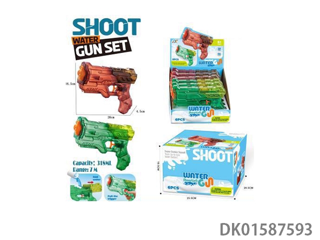 Transparent hand pulled medium-sized hard pump water gun, 6 pieces/box