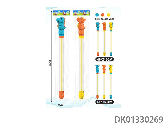 Pulling water cannon/water gun, 24 pieces/box (randomly mixed with dinosaur and triceratops in 3 colors) 49cm24PCS/BOX