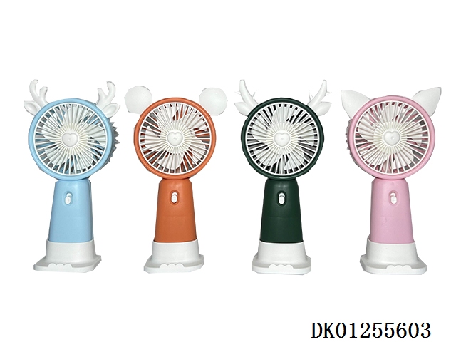 Cartoon animal handheld bottom charging fan with stand (usb)