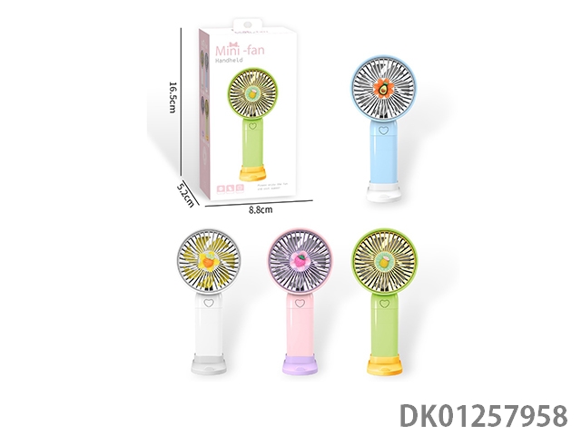 Cartoon fruit handheld charging fan with stand and bottom mount (usb)