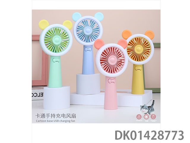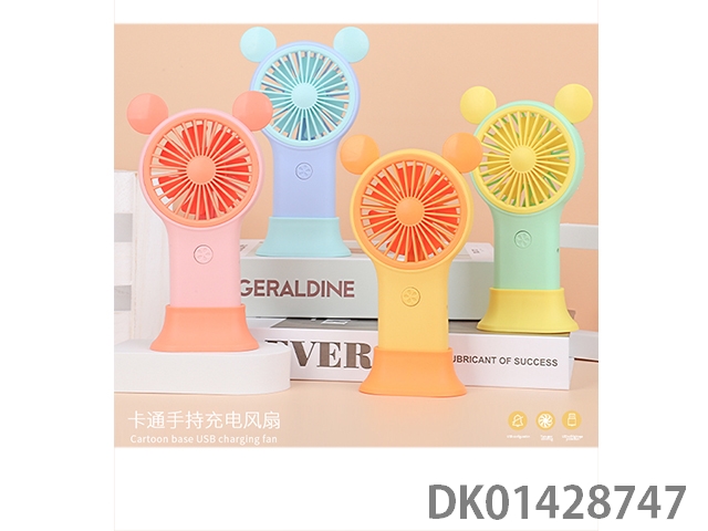 Cute mouse handheld charging fan with base and colorful lights