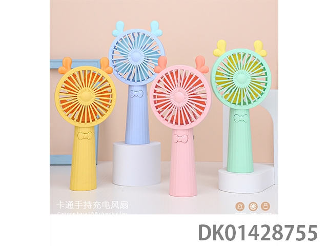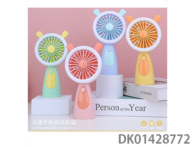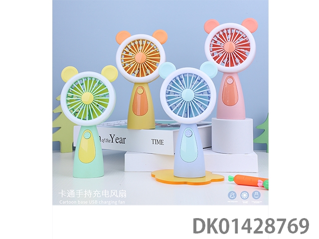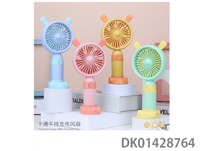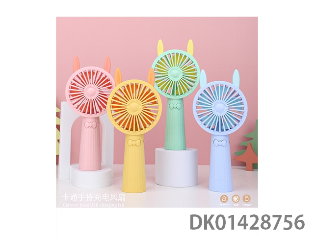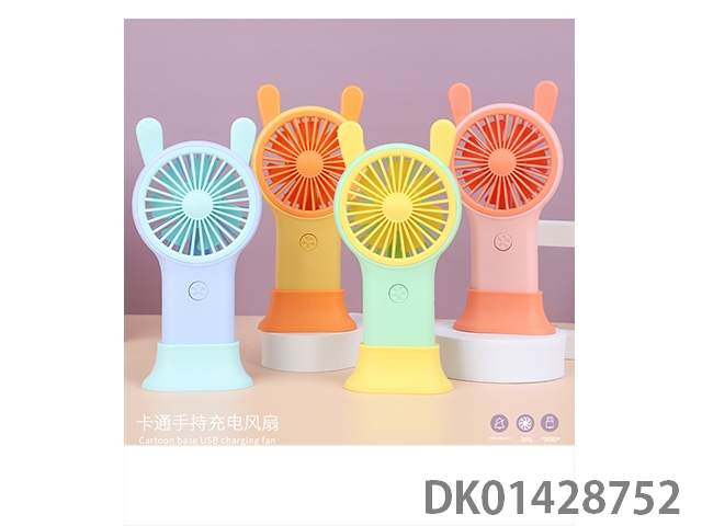 Cute rabbit handheld charging fan with base and colorful lights