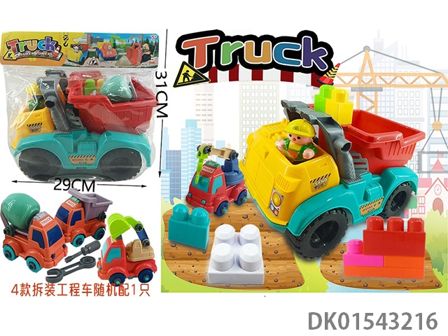 Dongfeng beach construction vehicle and disassembly and assembly construction vehicle (4 mixed models) and building blocks